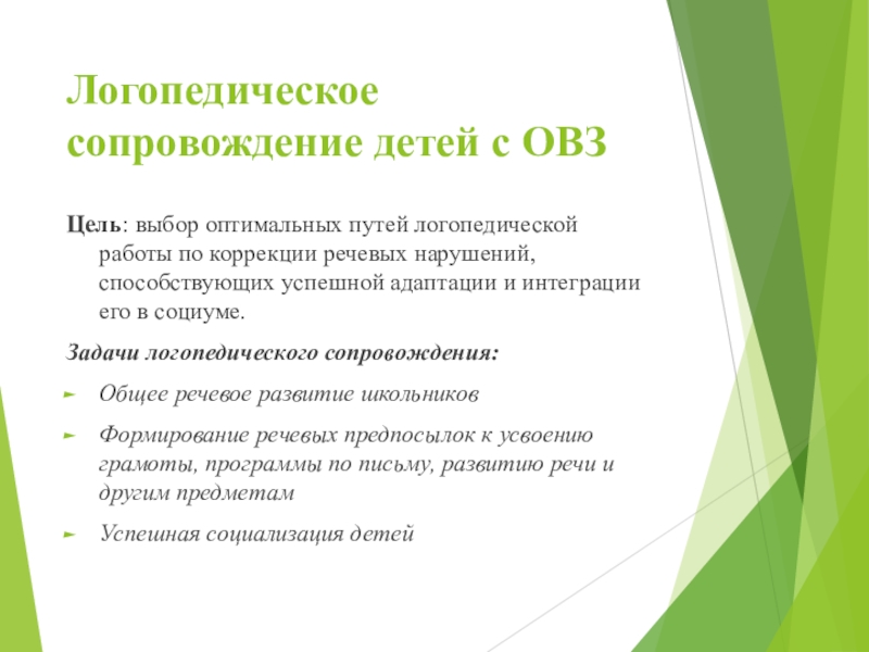 Задачи логопедического сопровождения: