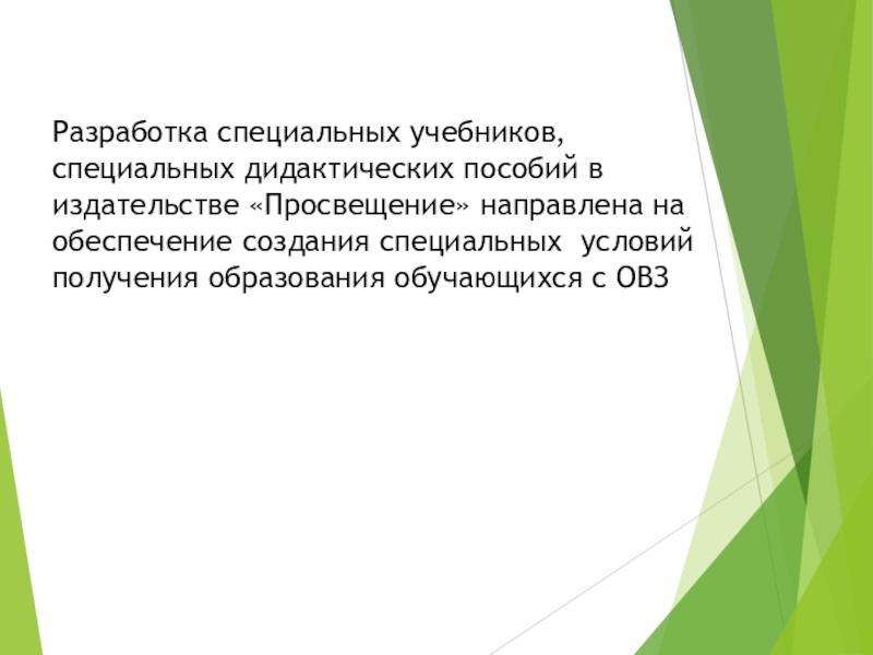 Слайд 13Разработка специальных учебников, специальных дидактических пособий в издательстве «Просвещение» направлена на