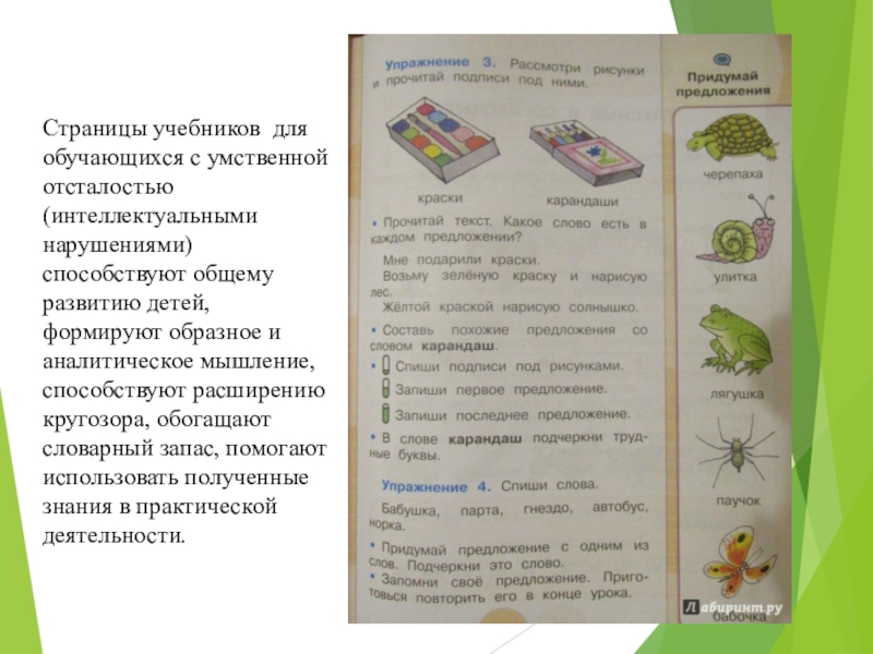 Слайд 15Страницы учебников для обучающихся с умственной отсталостью (интеллектуальными нарушениями) способствуют общему