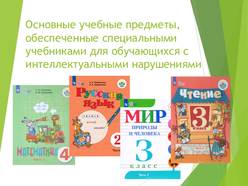 Слайд 12Основные учебные предметы, обеспеченные специальными учебниками для обучающихся с интеллектуальными нарушениями