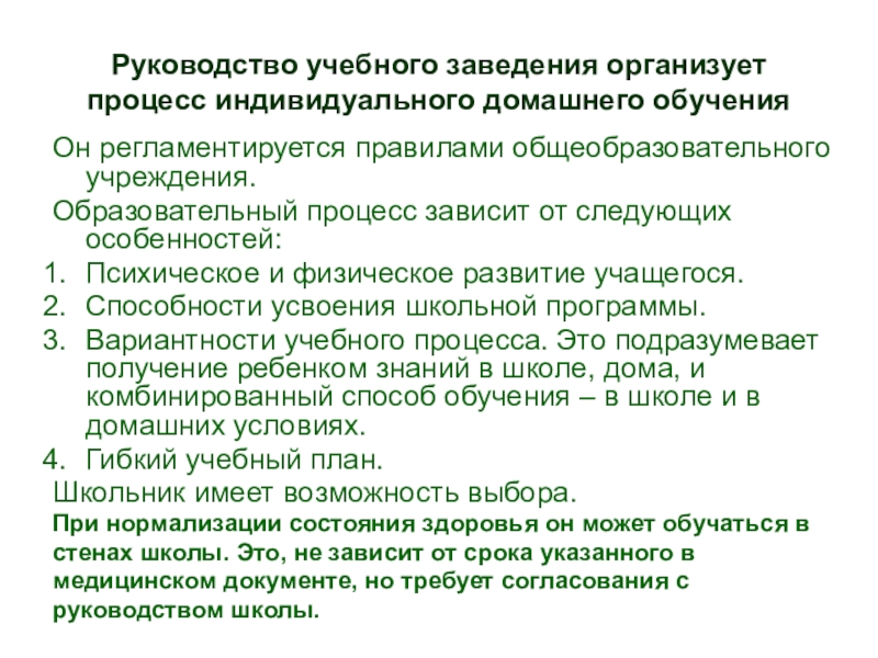 Слайд 35Руководство учебного заведения организует процесс индивидуального домашнего обучения
