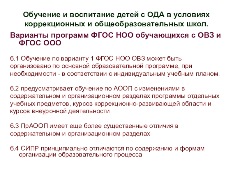Обучение и воспитание детей с ОДА в условиях коррекционных и общеобразовательных школ.