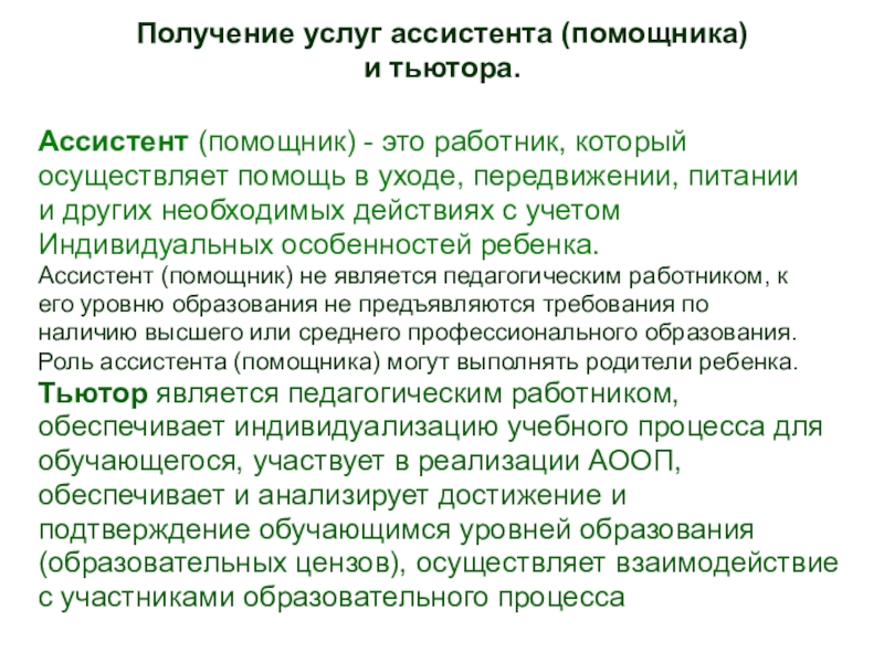Слайд 29Получение услуг ассистента (помощника)