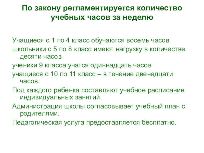 По закону регламентируется количество учебных часов за неделю