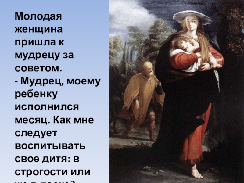 Слайд 3Молодая женщина пришла к мудрецу за советом.