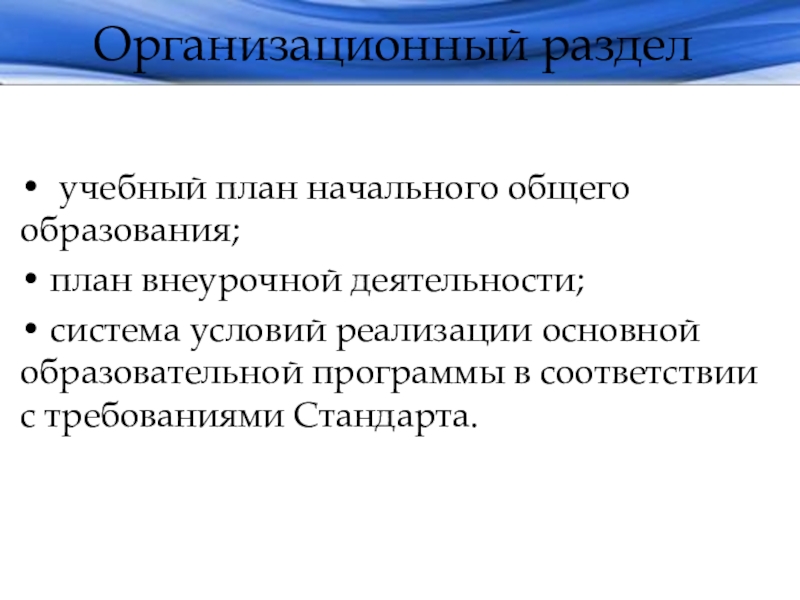 Слайд 14Организационный раздел