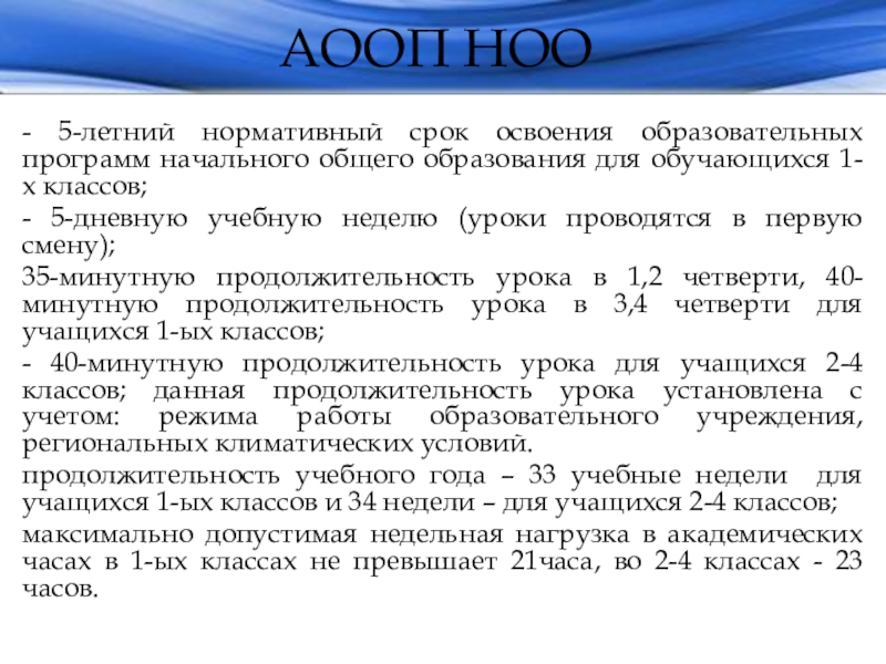 - 5-летний нормативный срок освоения образовательных программ начального общего образования