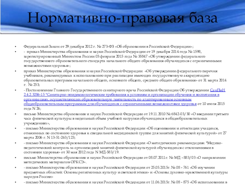 Слайд 2Нормативно-правовая база