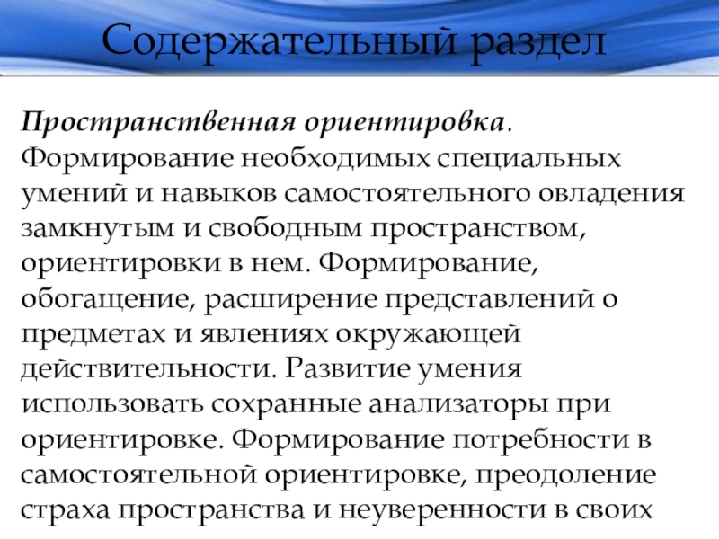 Пространственная ориентировка. Формирование необходимых специальных умений и навыков самостоятельного овладения