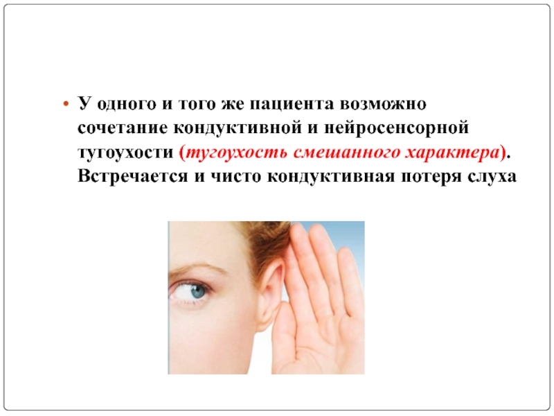 тугоухости (тугоухость смешанного характера). Встречается и чисто кондуктивная потеря слуха