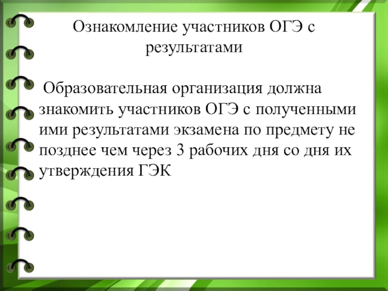 Слайд 28Ознакомление участников ОГЭ с результатами