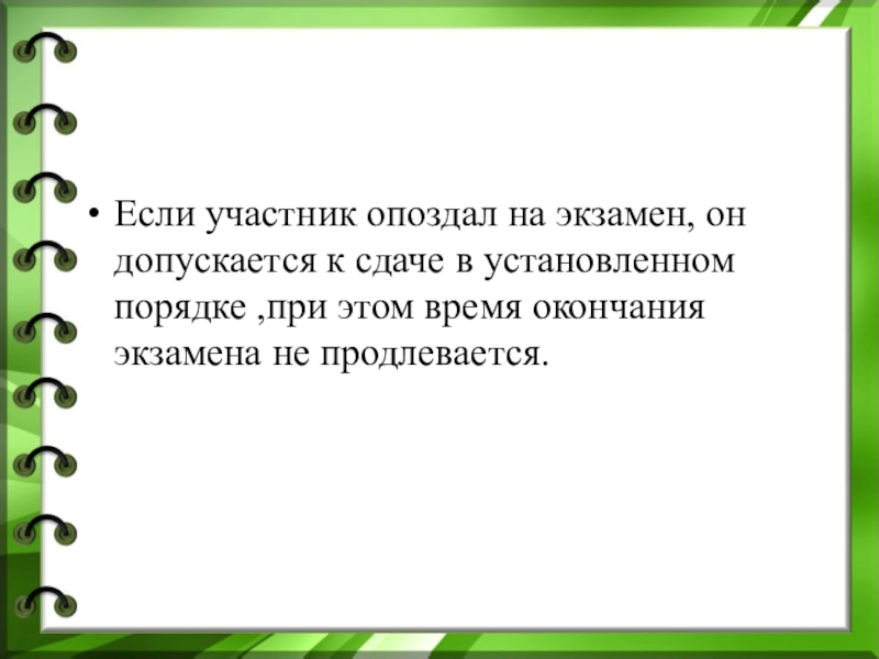Если участник опоздал на экзамен, он допускается к сдаче в установленном