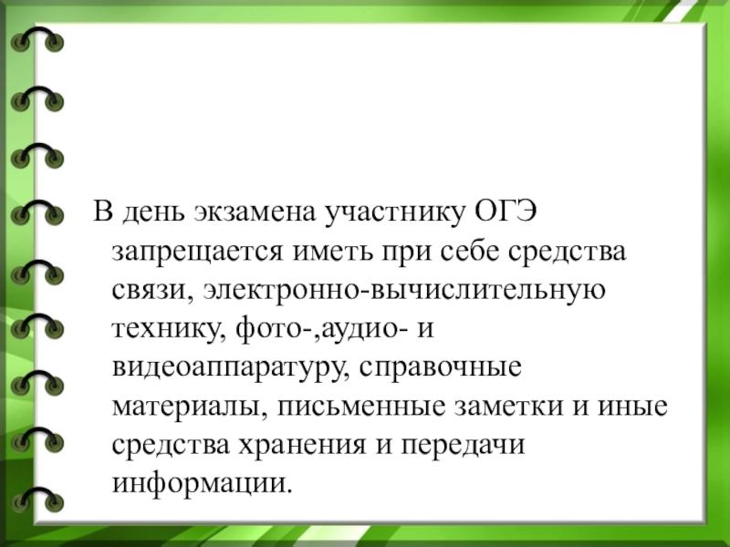 В день экзамена участнику ОГЭ запрещается иметь при себе средства