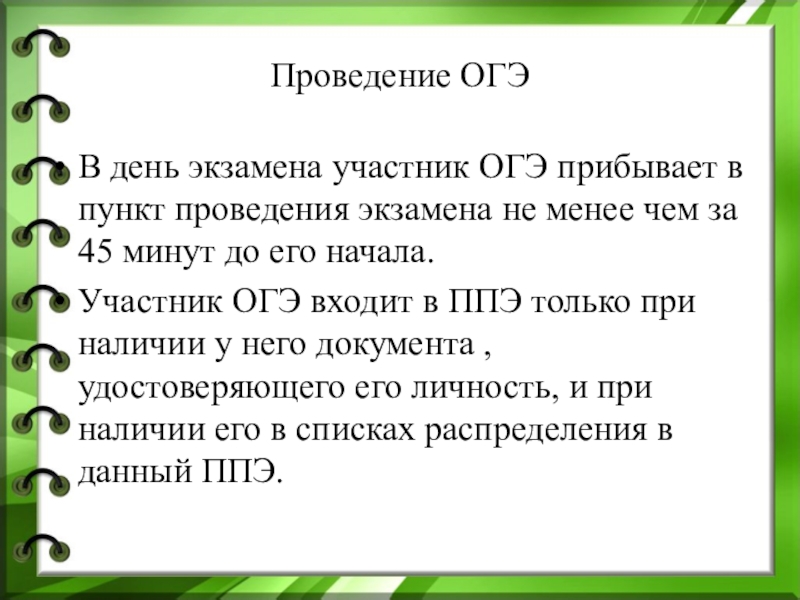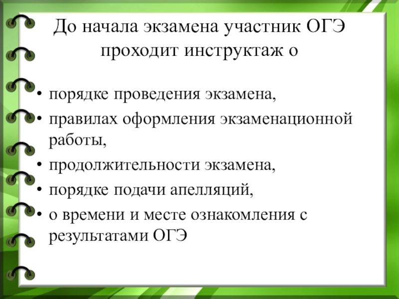 Слайд 17До начала экзамена участник ОГЭ проходит инструктаж о