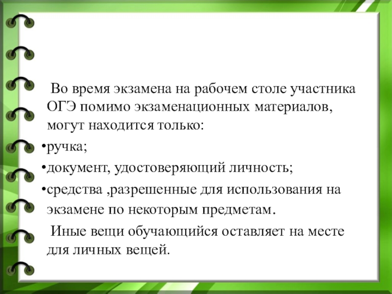 Во время экзамена на рабочем столе участника ОГЭ помимо экзаменационных