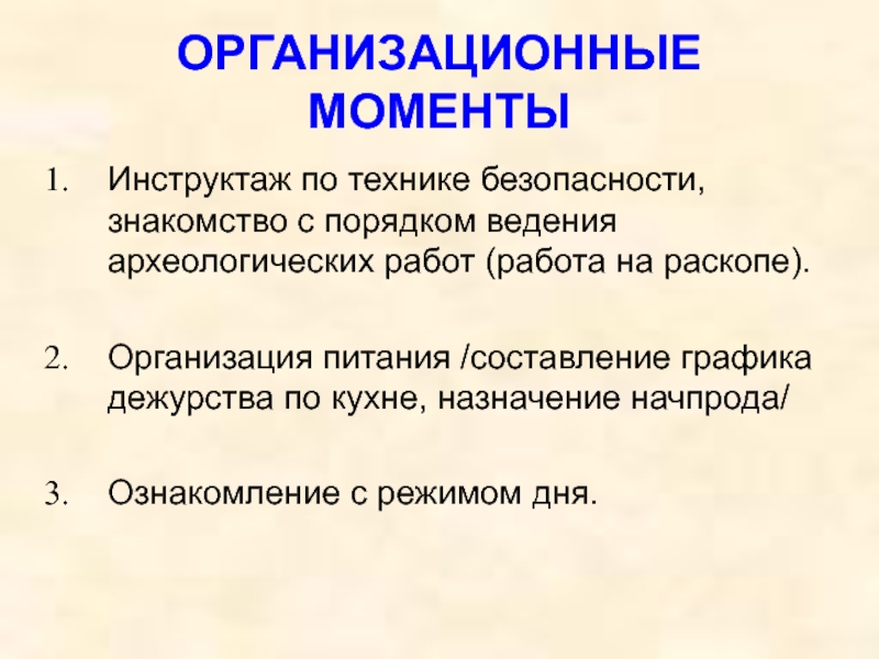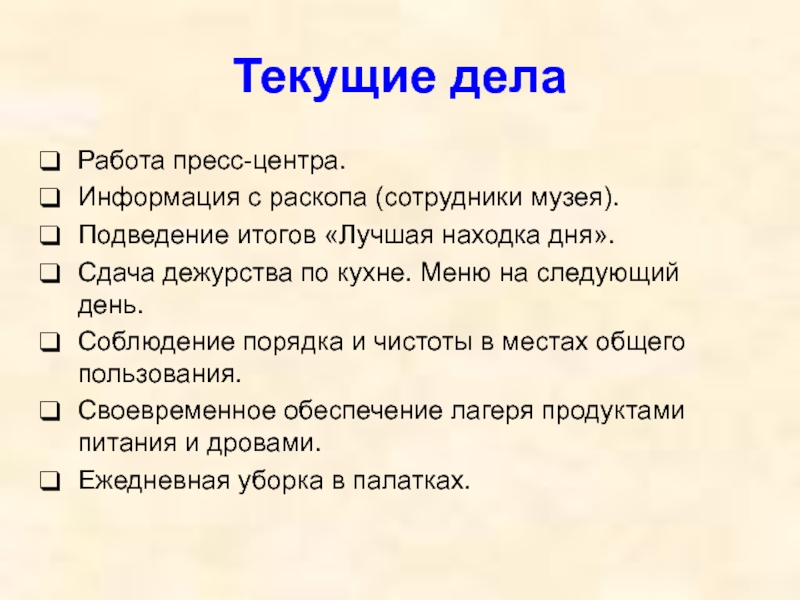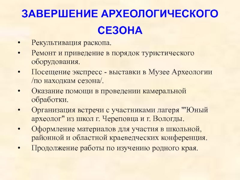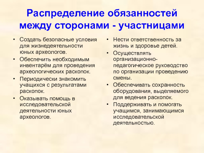 Обеспечивать сохранность оборудования, выделяемого для ведения раскопок.