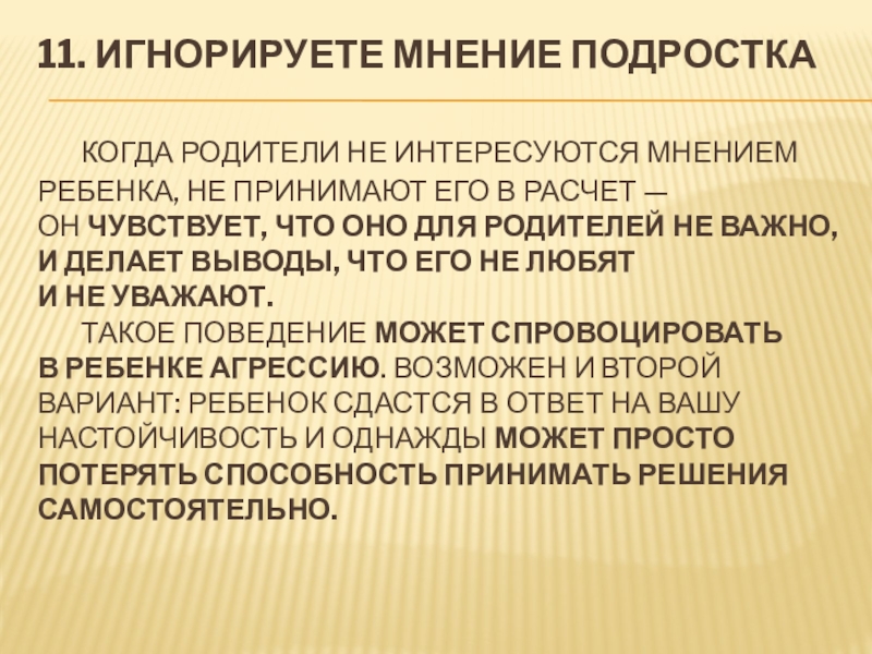 Когда родители не интересуются мнением ребенка, не принимают его в расчет —
