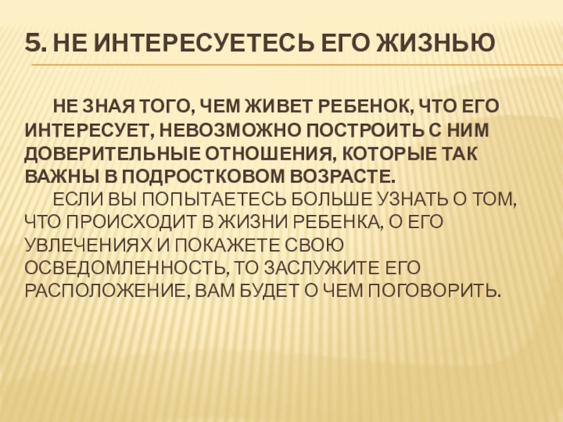 невозможно построить с ним доверительные отношения, которые так важны в подростковом возрасте.