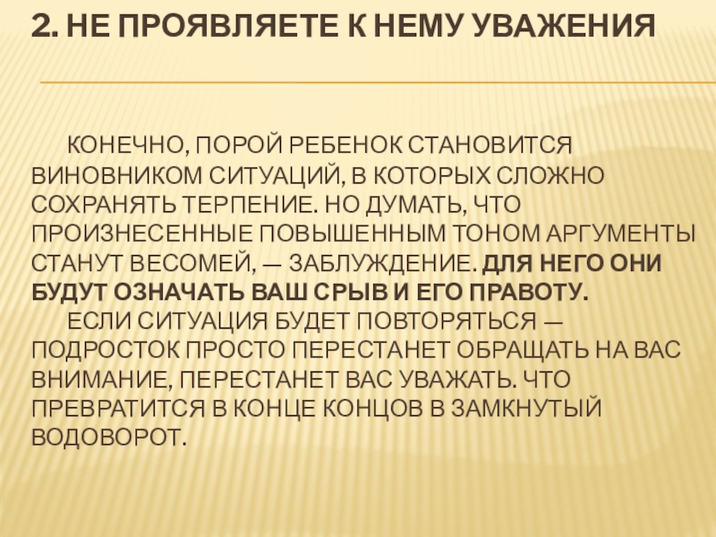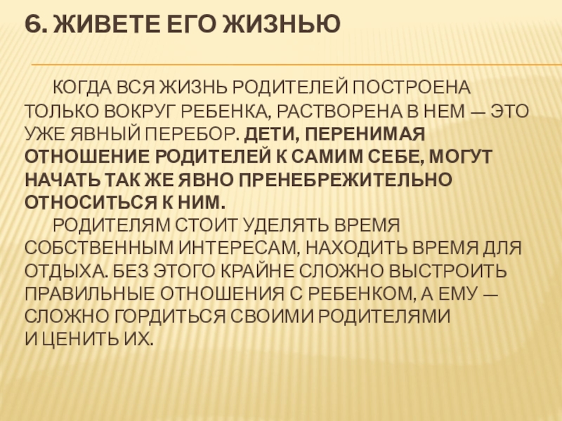 растворена в нем — это уже явный перебор. Дети, перенимая отношение родителей к самим себе, могут начать так же явно пренебрежительно относиться к ним.