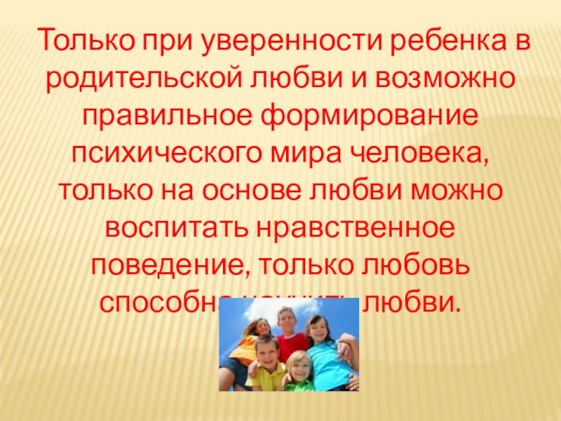 Слайд 9Только при уверенности ребенка в родительской любви и возможно правильное формирование