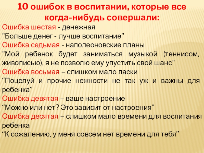 Ошибка десятая – слишком мало времени для воспитания ребенка