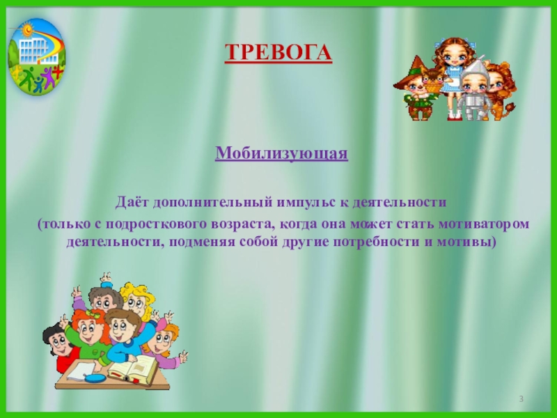 Тревога определяется как эмоциональное состояние, возникающее в ситуации неопределённой опасности и проявляющееся в ожидании неблагополучного развития событий («Краткий психологический словарь»).