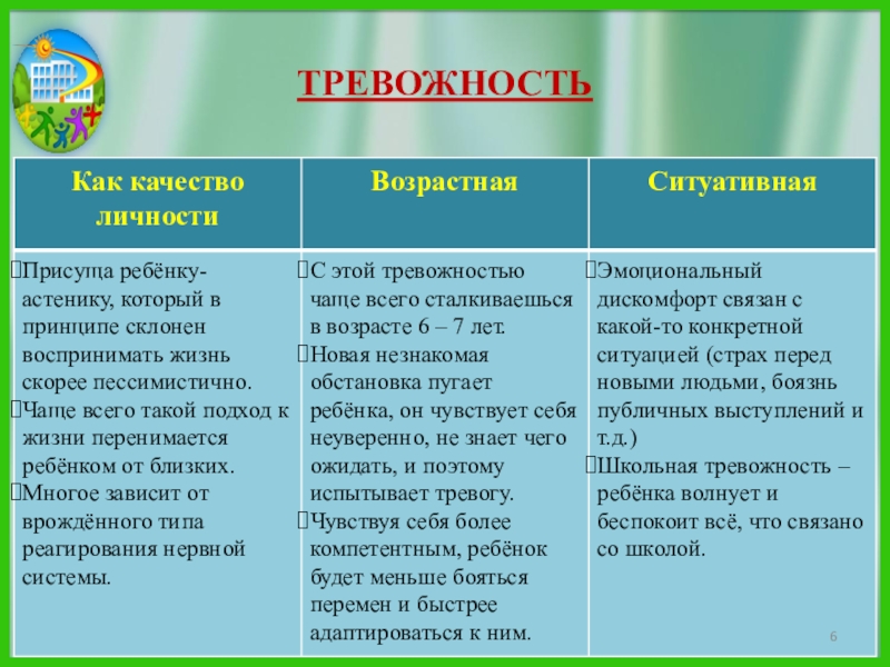 Тревожность – это «индивидуальная психологическая особенность, заключающаяся в повышенной склонности испытывать беспокойство в самых различных жизненных ситуациях, в том числе и в таких, которые к этому не предрасполагают».
