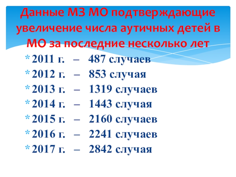 Данные МЗ МО подтверждающие увеличение числа аутичных детей в МО за последние несколько лет