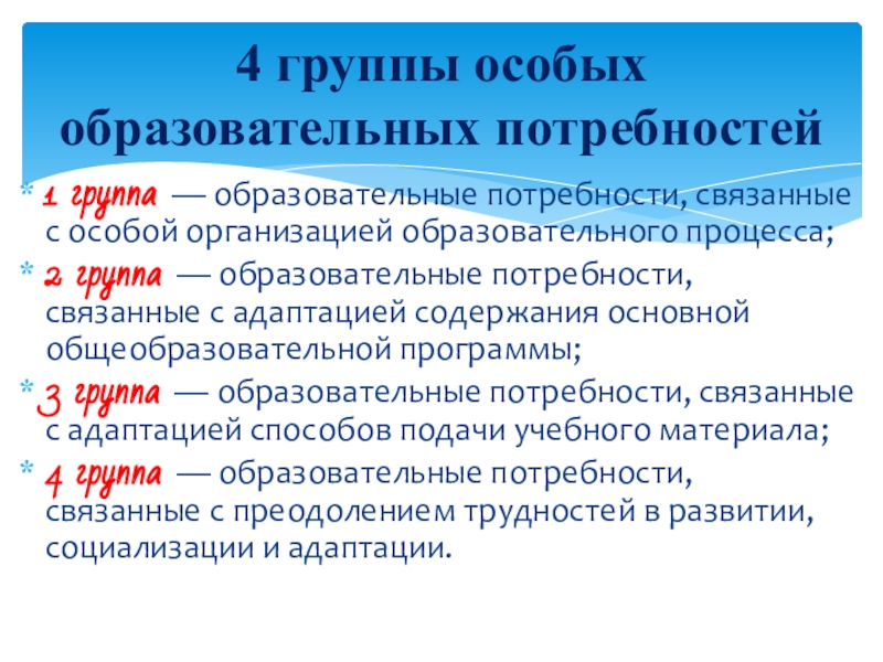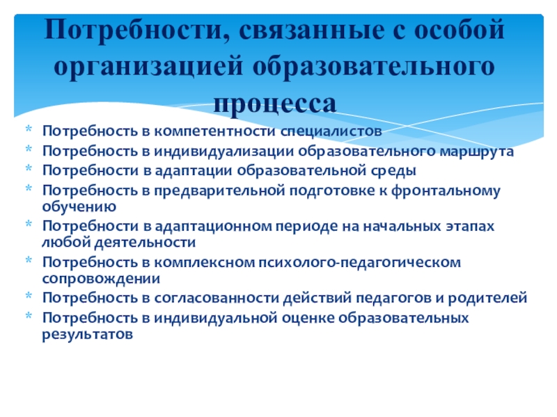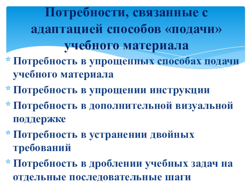 Потребности, связанные с адаптацией способов «подачи» учебного материала