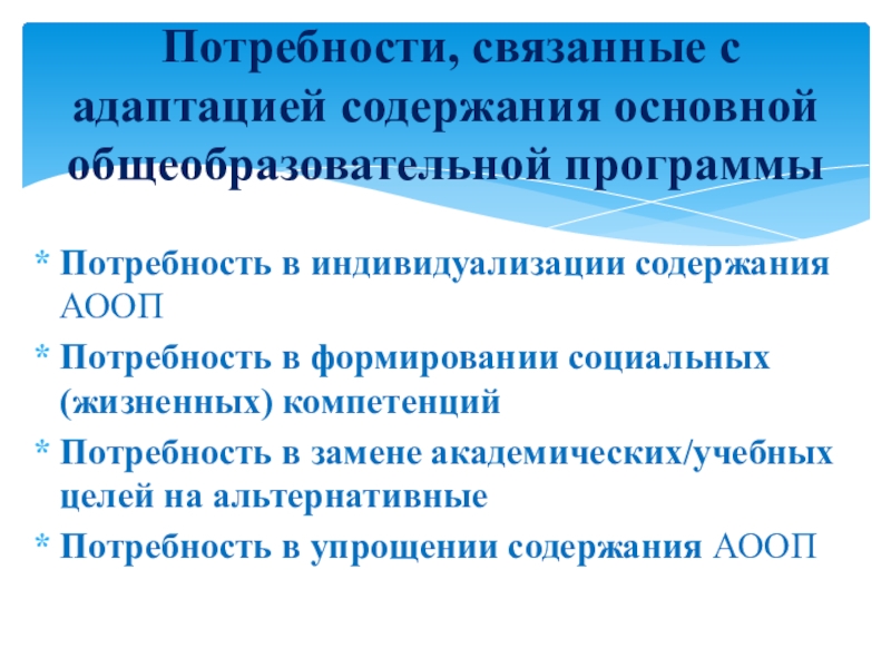 Потребности, связанные с адаптацией содержания основной общеобразовательной программы