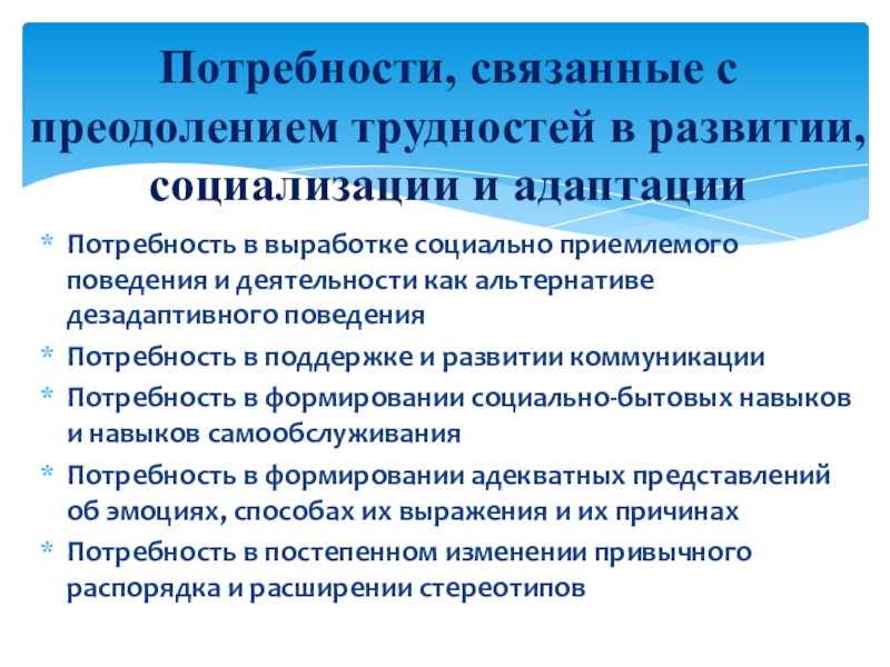 Потребности, связанные с преодолением трудностей в развитии, социализации и адаптации