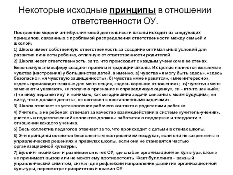 Некоторые исходные принципы в отношении ответственности ОУ.