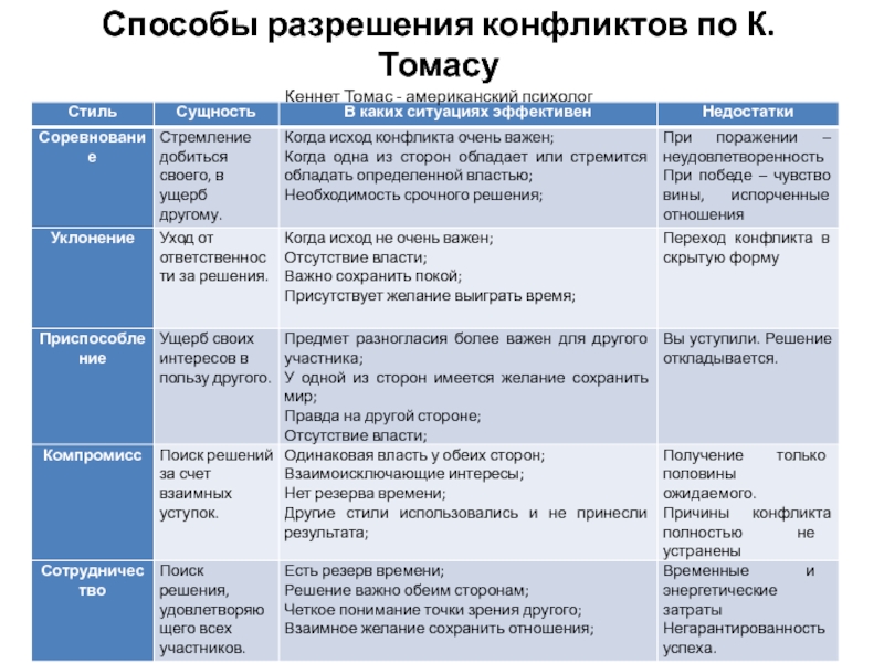 Слайд 5Способы разрешения конфликтов по К.Томасу