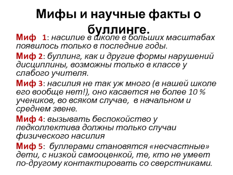 Миф 4: вызывать беспокойство у педколлектива должны только случаи физического насилия