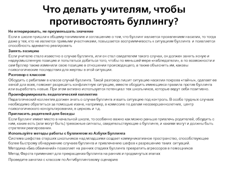 Слайд 14Что делать учителям, чтобы противостоять буллингу?