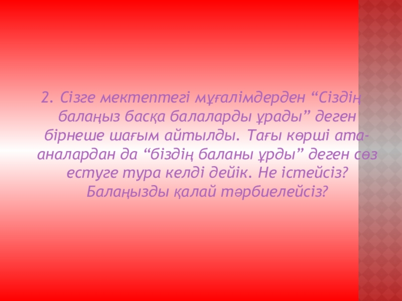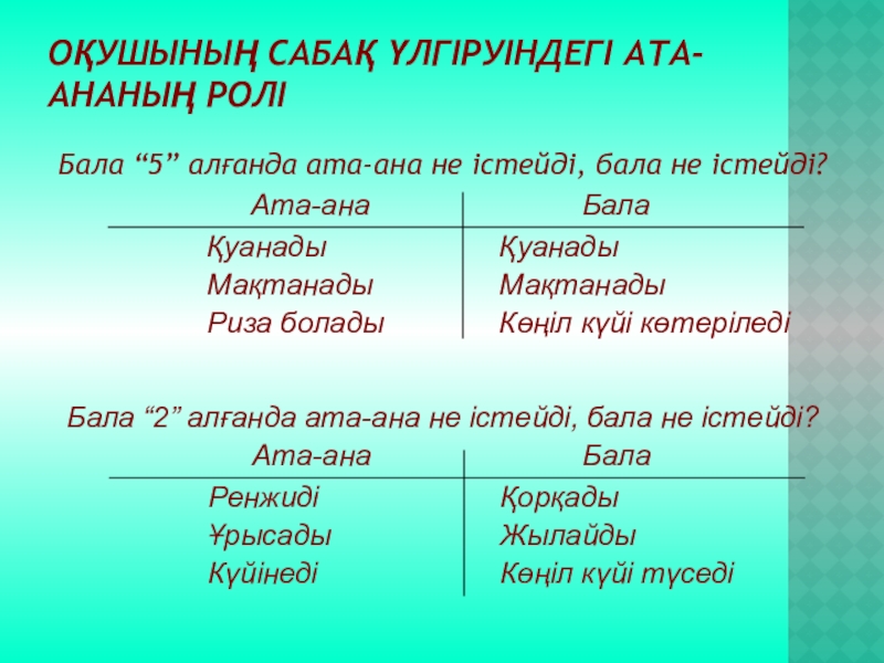 Бала “2” алғанда ата-ана не істейді, бала не істейді?