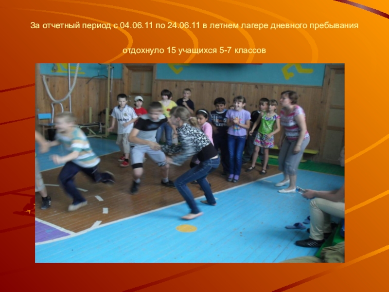 Слайд 9За отчетный период с 04.06.11 по 24.06.11 в летнем лагере дневного