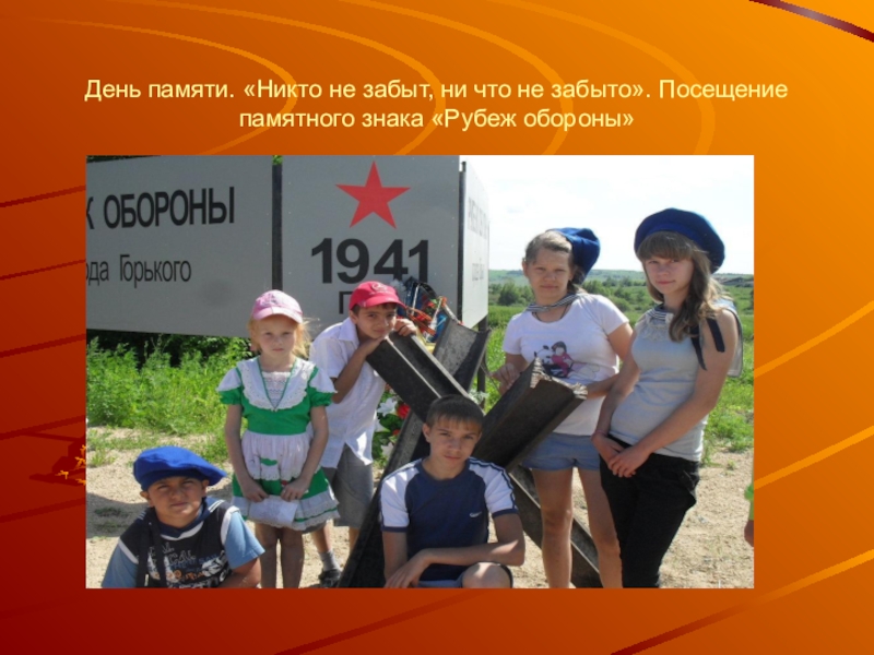 Слайд 10День памяти. «Никто не забыт, ни что не забыто». Посещение памятного