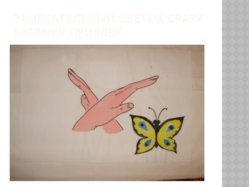 Слайд 20Замечательный цветок сразу бабочку привлек.