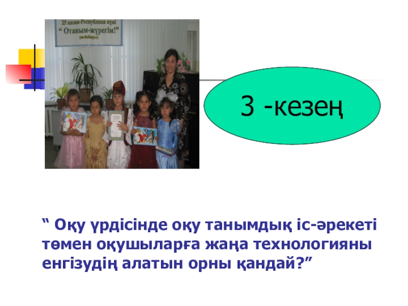 3 -кезең“ Оқу үрдісінде оқу танымдық іс-әрекеті төмен оқушыларға жаңа технологияны енгізудің алатын орны қандай?”