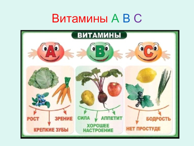 Презентация, доклад на тему Овощи и фрукты - витаминные продукты.
