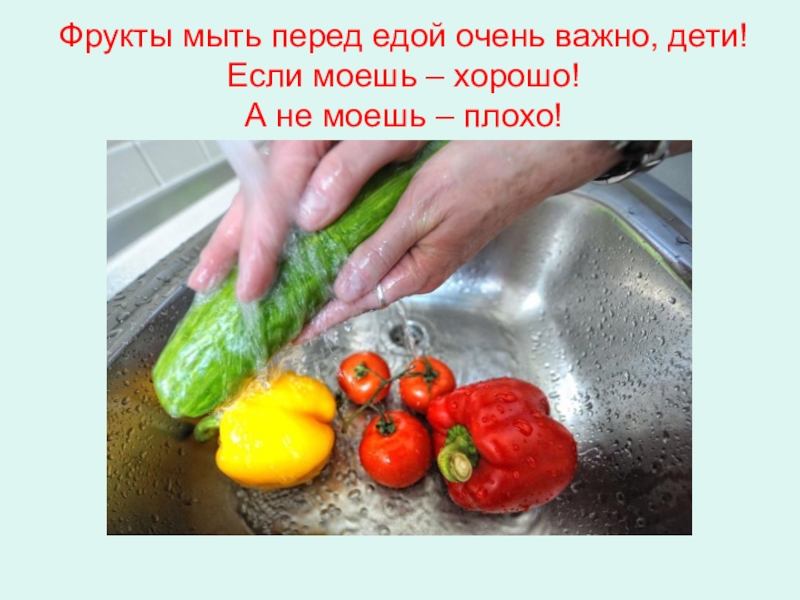 Слайд 7Фрукты мыть перед едой очень важно, дети! Если моешь – хорошо! А не