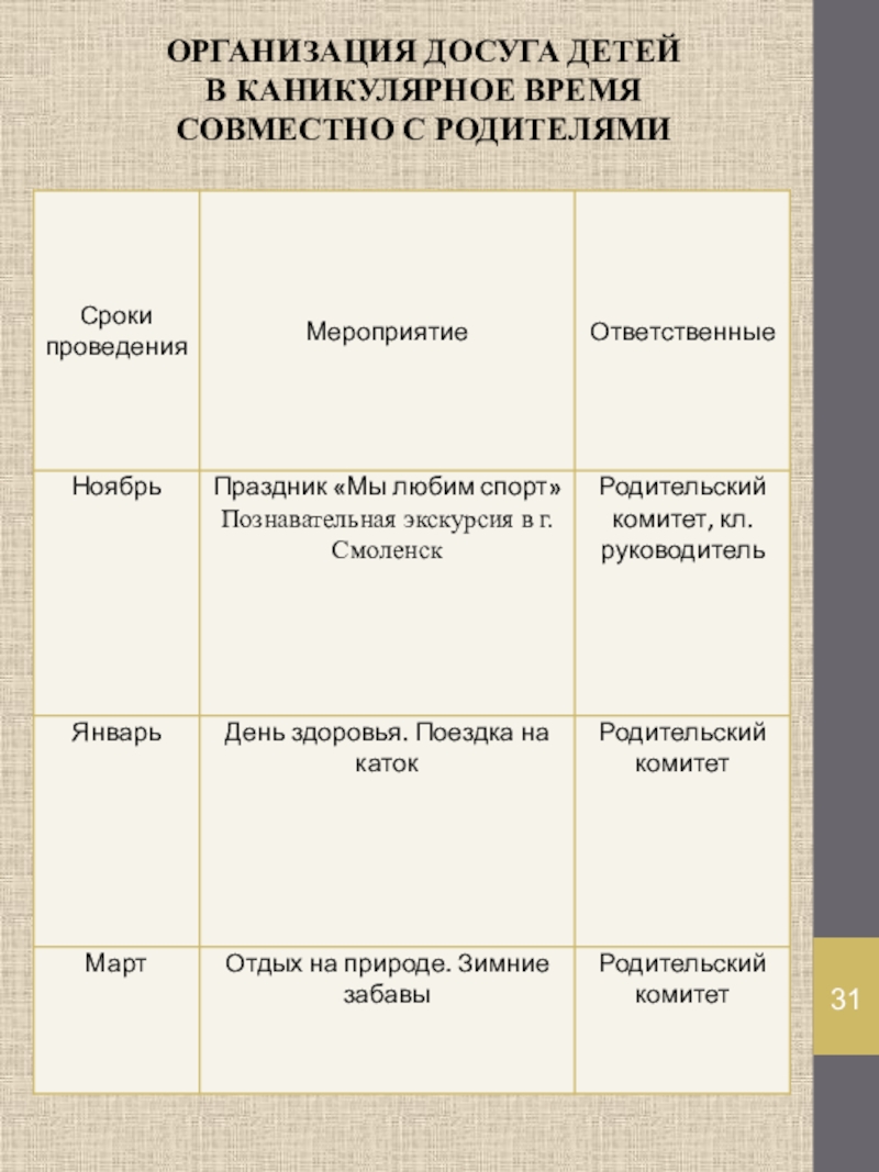 Слайд 31ОРГАНИЗАЦИЯ ДОСУГА ДЕТЕЙ
