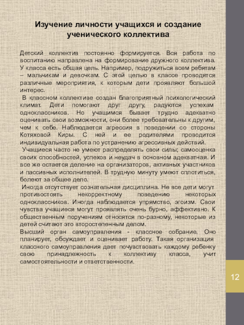 Слайд 12Изучение личности учащихся и создание ученического коллектива