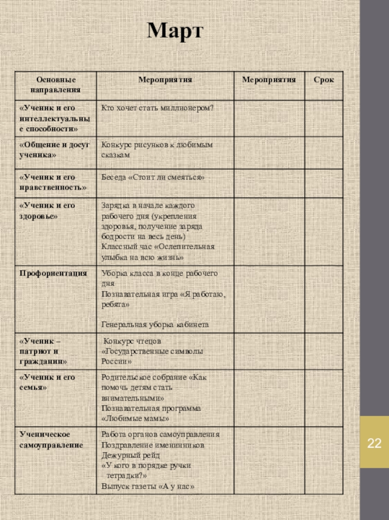высказывать свое мнение о проводимых в классе мероприятиях;