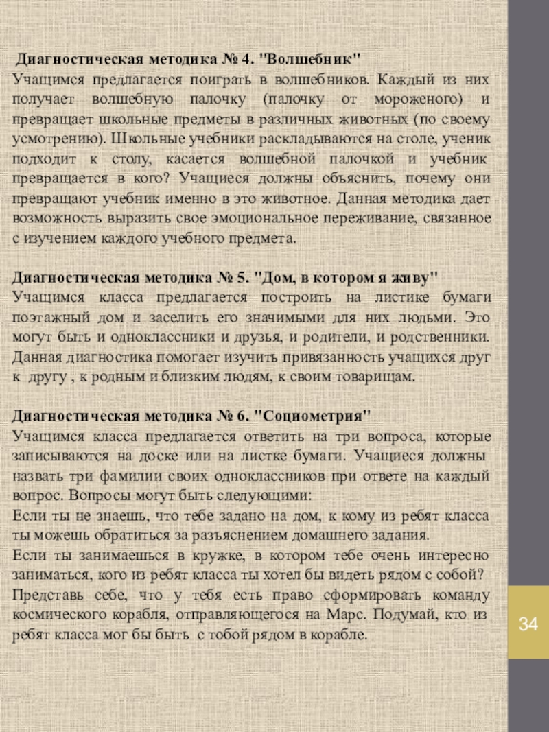 Слайд 34 Диагностическая методика № 4. "Волшебник"