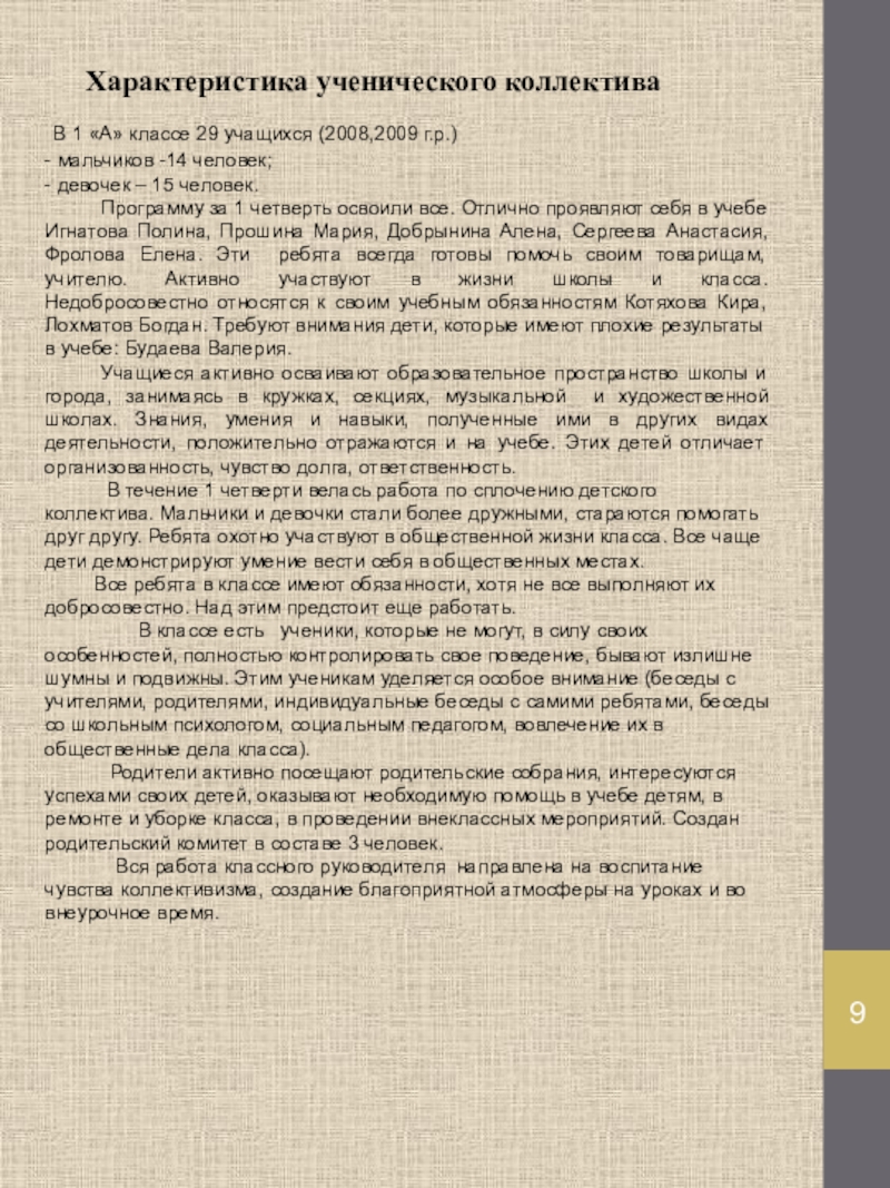 Слайд 9 В 1 «А» классе 29 учащихся (2008,2009 г.р.)