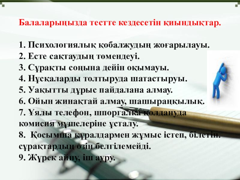 Слайд 2Балаларыңызда тестте кездесетін қиындықтар.