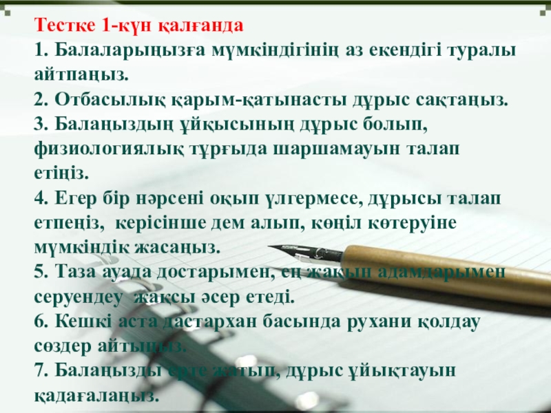 Слайд 8Тестке 1-күн қалғанда