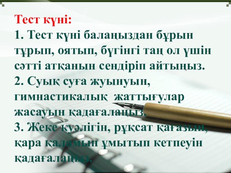 Слайд 9Тест күні: